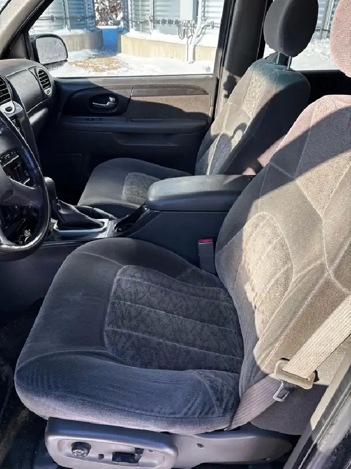 2003 GMC Envoy (4 wheel drive). Vortec 4.2L with 207,000km. 4 new tires, wheel alignment done when tires installed, new battery, A/C, tilt, cruise, dual climate control, power windows and locks, sunroof and hidden hitch. Very clean interior with no tears or staining on seats. Excellent fuel mileage and a very reliable vehicle.