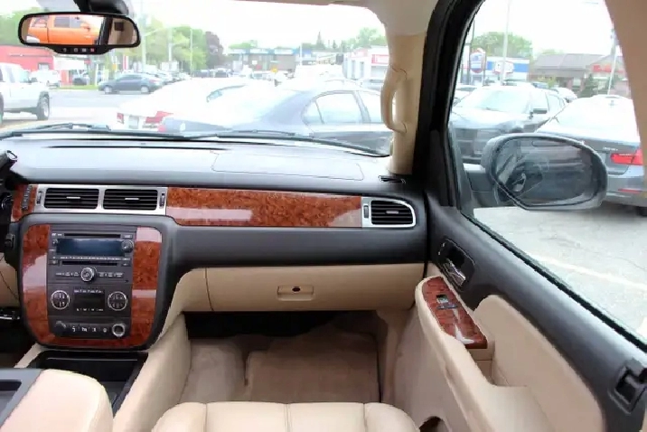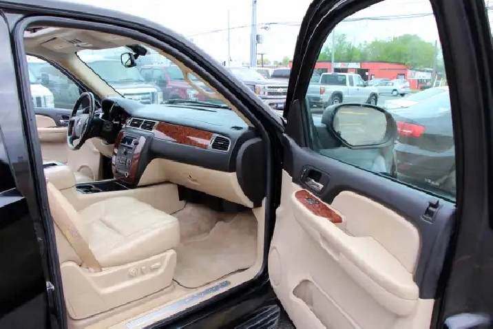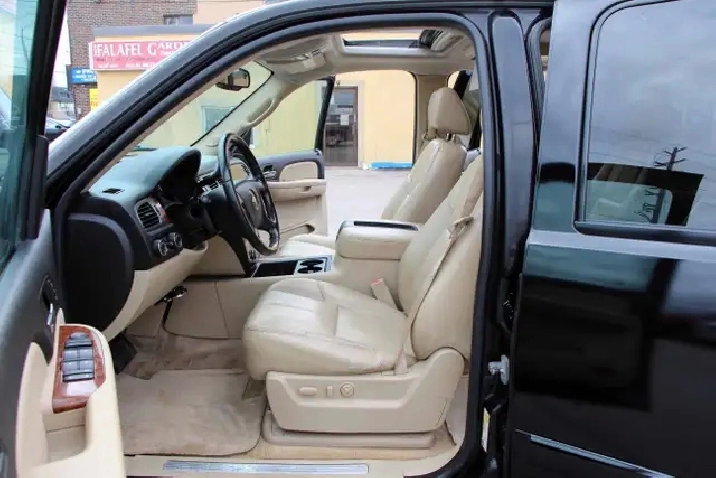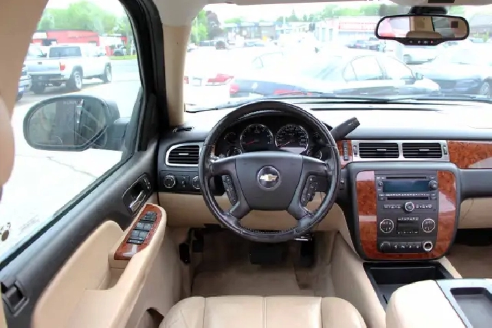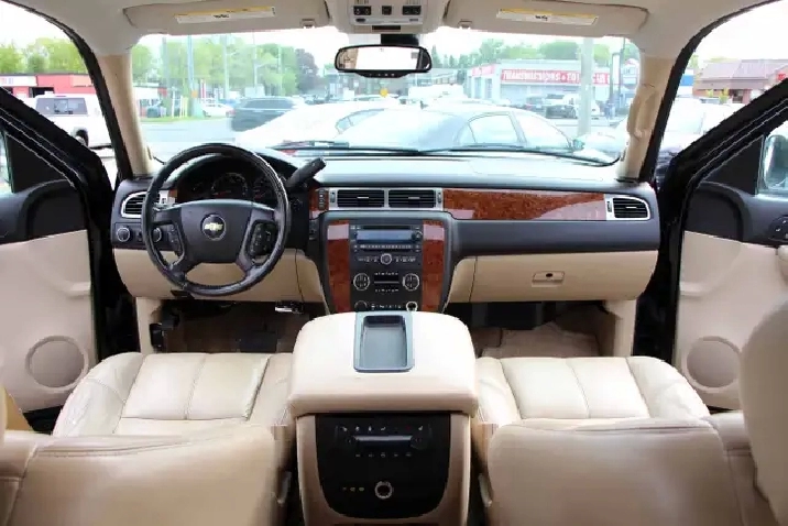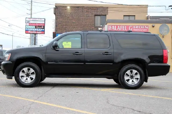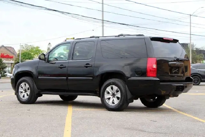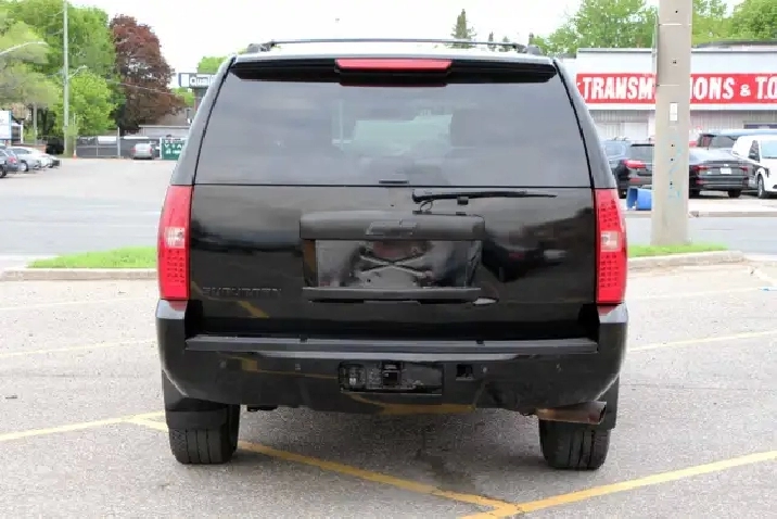 2007 Chevrolet Suburban 1500 4x4 LT 7-Passenger with 277,695 original kilometers. 5.3L 8-Cylinder. Black on beautiful Beige interior with wooden trim. Loaded with 2nd row heated Capitan seats, Power tailgate, Sunroof, Park assist, Power folding rear seats, Adjustable pedals, Power driver/passenger seats with lumbar, Roof rack, Fog lights, and some nice rims. Interior in great condition. Runs and drives strong. Certified with our 2 year power train warranty.