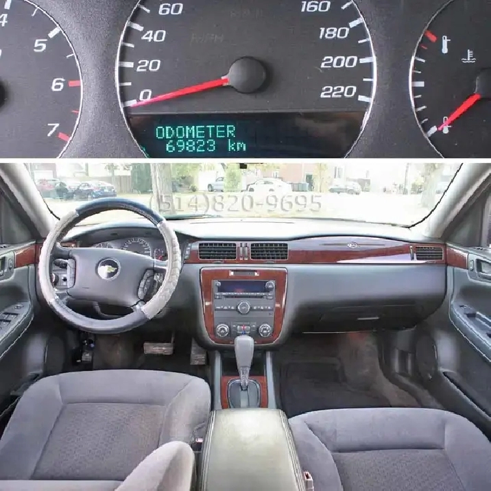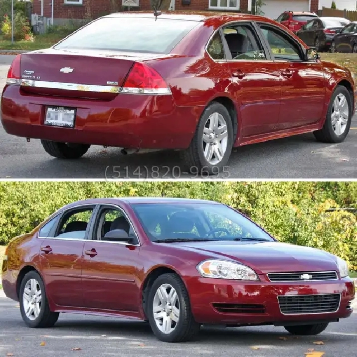 2011 Chevrolet Impala LT NIV:2G1WB5EKXB1131433. Intérieur neuf, non fumeur, aucun animaux, aucun enfants. Traitée antirouille chaque année. Tout Équipé 3,5L V6 FlexFuel E85, jantes aluminium 17 po. Toyo Celcius 225/55R17 pneus hiver de 4 saisons, déverrouillage à distance, sièges électriques, rétroviseurs électriques, sièges arrière rabattables, ouvre valise électrique, climatisation, Bluetooth, lecteur CD. Le vendeur privé est le propriétaire. Acheté chez un concessionnaire GM en 2022 à 56000 km. Entretien effectuée avec factures à l'appui. Saaq légal avec l'immatriculation et l'assurance. Aucune réparation requise. Prêt à partir. Photos de octobre 2025. Demandez pour vidéo.