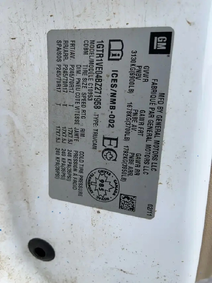 This is for sale in the March 27 & 28, 2026 Unreserved Equipment, Trucks, Trailers, Light Vehicles & RV Live 2 Day Auction - Toronto, find it here: https://www.northtorontoauction.com/auctions/24982/lot/173442-2011-gmc-sierra-1500-4x2-sle-4dr-extended-cab-8-ft-lb-rwd