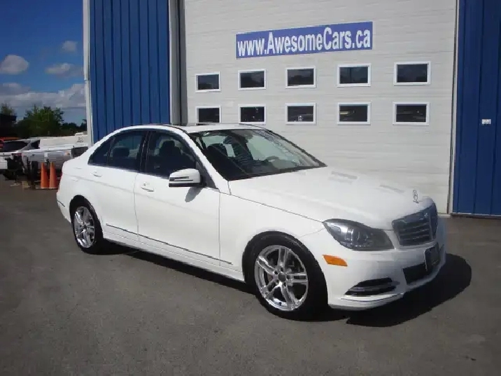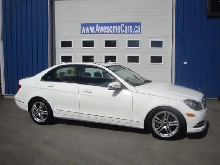 Local C300 4Matic sedan in excellent condition in and out .  248 HP 3.5 Litre V6 powered MB. Fully appointed and well maintained Mercedes Benz that shows fussy owners care in all regards.  208,000 kilometers on this white over tan leather beauty.  Full service and new M.V.I. just completed.  Premium options include power roof , alloy wheel package, GPS, hands free phone link and lots more.  Priced right for this All Wheel Drive MB at only $9995.  Warranty available, some trades considered.  Available at our 1841 Hanwell Rd. location. See the rest of our inventory at AwesomeCars.ca
