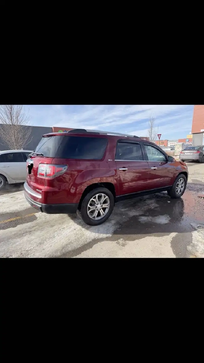 Selling my FIRST OWNER 2015 GMC Acadia AWD SLT-2, 7-passenger, featuring a 3.6L V6 engine and in excellent, mint condition with no mechanical issues. This is fully loaded, comes with a factory remote starter, two key fobs, backup camera, heads-up display, and heated and cooled black leather seats. Always serviced on schedule, ACTIVE STATUS with no claims and no hail damage. Recently fitted with new brakes and brand-new Michelin CrossClimate2 all-weather tires on 19” alloy wheels. please call or text 403-614-4504