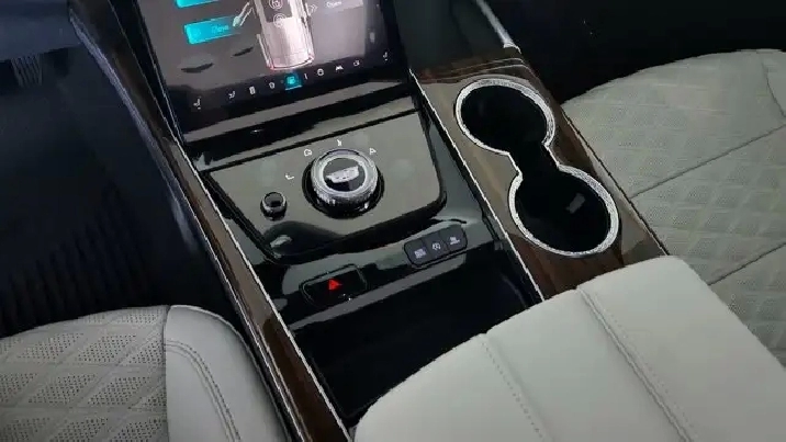- Console, floor with covered storage, large and small storage bins, dual cup holders, electronic climate controls and second row heated seat controls. Also includes auxiliary power outlet, USB A/C ports and 110-volt outlet (Upgradeable to (DCK) Console refrigerator.)