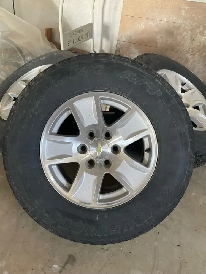 Currently has Firestone Winter tires on with TPMS. Comes with new Dueler A/T tires on Aluminum rims with TPMS.