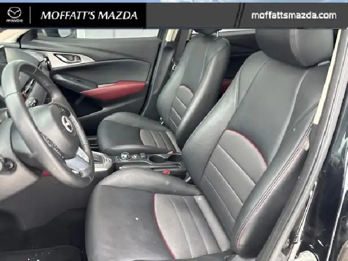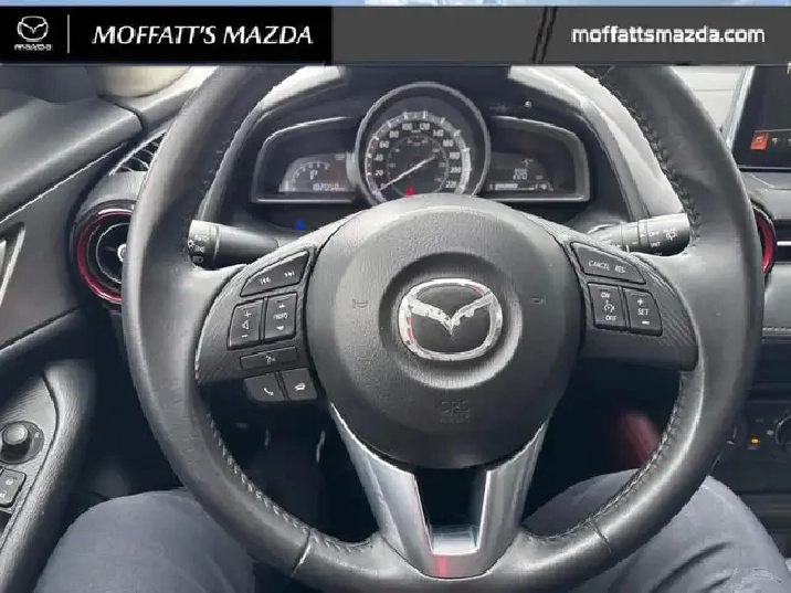 Our CX-3's trim level is GS. Premium comfort is the focus of this Mazda CX-3 GS with heated front seats to keep you warm in winter. Heated door mirrors clear off ice for improved visibility and come with turn signal indicators. Also standard on this trim are features you're sure to appreciate like rain-sensing front wipers, stylish aluminum wheels, a leather-wrapped steering wheel, shift knob and parking brake, a seven-inch colour touchscreen display with MAZDA CONNECT, Bluetooth, and illuminated entry. This vehicle has been upgraded with the following features: Heated Seats, Remote Keyless Entry, Bluetooth, Rearview Camera, Steering Wheel Audio Control, Leather Steering Wheel, Aluminum Wheels.