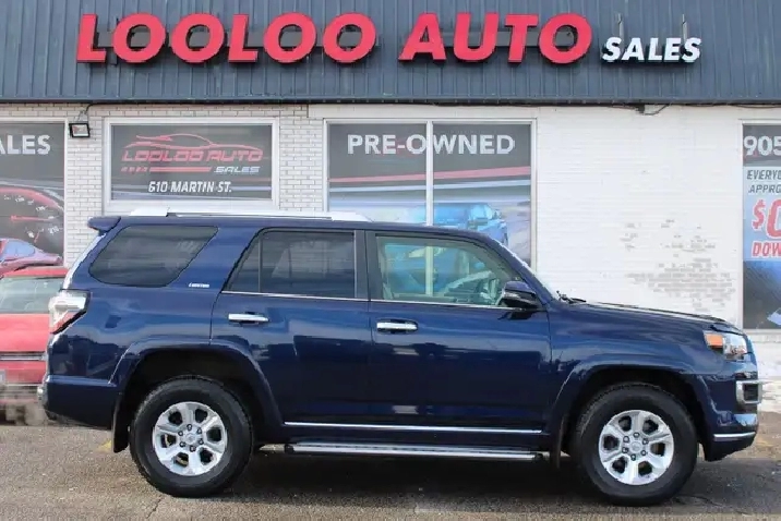 WELL MAINTAINED SAFETY CERTIFICATION INCLUDED Toyota 4Runner SR5 LIMITED 4WD Unleash your spirit of exploration with the Toyota 4Runner SR5 LIMITED 4WD! This rugged SUV combines powerful performance and luxury, featuring a robust V6 engine and a premium leather interior. -------------------------------------------------------------- Financing available for 36 Months OAC. -------------------------------------------------------------- Fully Loaded with: Power Windows, Locks, Mirrors, CD/ AUX, Bluetooth, AC, Navigation System, Heated Leather Seats, Rear View Camera, Sunroof, Alloys, ALL THE POWER OPTIONS!! -------------------------------------------------------------- Vehicle comes with: Safety Certification, and Car Fax Report ALL INCLUDED!! At no extra cost to you!! Don't miss this opportunity to own a high-quality, pre-owned vehicle. Visit us at LooLoo Auto Sales retail store at 610 Martin Street, Milton, L9T 3H6 and take this car for a test drive today. -------------------------------------------------------------- Our knowledgeable sales team is available to answer any questions and assist with financing options. We also welcome trade-ins, with on-site buyers available to estimate your vehicle on the same day. We are committed to providing an easy purchase process with top-notch dedication every step of the way. -------------------------------------------------------------- Additionally, our vehicles qualify for up to 4 years of extended warranty. Please speak to your sales representative for more information. -------------------------------------------------------------- Visit us at 610 Martin Street, Milton, L9T 3H6 or call us at 905-901-3161 for more information. -------------------------------------------------------------- Experience why Looloo Auto Sales is leading in crowd favourites!