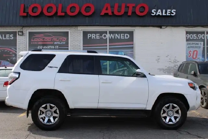 WELL MAINTAINED SAFETY CERTIFICATION INCLUDED Toyota 4Runner SR5 4WD Unleash your spirit of exploration with the Toyota 4Runner SR5 4WD! This rugged SUV combines powerful performance and luxury, featuring a robust V6 engine and a premium leather interior. -------------------------------------------------------------- Financing available for 48 Months OAC. -------------------------------------------------------------- Fully Loaded with: Power Windows, Locks, Mirrors, CD/ AUX, Bluetooth, AC, Navigation System, Heated Leather Seats, Rear View Camera, Sunroof, Alloys, ALL THE POWER OPTIONS!! -------------------------------------------------------------- Vehicle comes with: Safety Certification, and Car Fax Report ALL INCLUDED!! At no extra cost to you!! Don't miss this opportunity to own a high-quality, pre-owned vehicle. Visit us at LooLoo Auto Sales retail store at 610 Martin Street, Milton, L9T 3H6 and take this car for a test drive today. -------------------------------------------------------------- Our knowledgeable sales team is available to answer any questions and assist with financing options. We also welcome trade-ins, with on-site buyers available to estimate your vehicle on the same day. We are committed to providing an easy purchase process with top-notch dedication every step of the way. -------------------------------------------------------------- Additionally, our vehicles qualify for up to 4 years of extended warranty. Please speak to your sales representative for more information. -------------------------------------------------------------- Visit us at 610 Martin Street, Milton, L9T 3H6 or call us at 905-901-3161 for more information. -------------------------------------------------------------- Experience why Looloo Auto Sales is leading in crowd favourites!