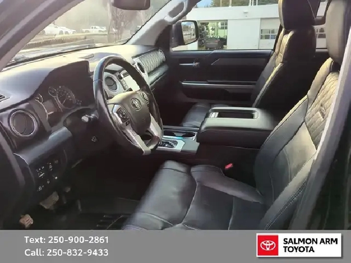 Platinum Trim - One Owner - Regularly maintained - New rear brakes Added value: $887 - Front brakes: 80% remaining - Brand new tires Summit Trail Climber. Added value: $1,225 - Wheel alignment completed with tire installation - Bluetooth connectivity - Fully serviced and detailed - Optional extended warranty available at time of purchase - A well-cared-for Tundra Platinum with recent maintenance already completed—ready for its next owner.
