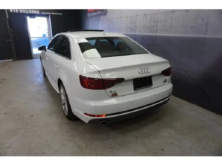 AUDI A4 KOMFORT 2.0 TFSI QUATTRO 2018 ÉDITION KOMFORT 2.0 LITRES TFSI TURBO 252 HP QUATTRO TRACTION INTÉGRALE ** BAS KILOMÉTRAGE ** FULL ÉQUIPÉ MAGS TOIT OUVRANT SIÈGES CUIR BRUN COGNAC CAMERA RECULE APPLE CARPLAY BLUETOOTH -- TRANSMISSION AUTOMATIQUE 7 RAPPORTS AVEC PADDLE SHIFT AU VOLANT -- AVEC SEULEMENT 110 846 KM CERTIFIÉ DIRECTEMENT VOLKSWAGEN / 4 CYLINDRES 2.0 LITRES TFSI TURBO AVEC 252 HP OFFRANT UNE BONNE PUISSANCE, DURABLE & FIABILITÉ AUDI RECONNUE (RAPPORT CARFAX INCLUS) COULEUR EXTÉRIEUR BLANC, INTÉRIEUR EN CUIR BRUN COGNAC / SIÈGES CHAUFFANTS,ÉLECTRIQUES,MÉMOIRES VOLANT CHAUFFANT -- INSPECTION COMPLÈTE INCLUSE -- ÉCHANGE ACCEPTÉ -- FINANCEMENT RAPIDE SUR PLACE OU EN LIGNE À TAUX AVANTAGEUX % -- GARANTIE INCLUS : 1 MOIS OU 1700 KM GROUPE MOTOPROPULSEUR -- POSSIBILITÉ DE GARANTIE PROLONGÉE À PRIX IMBATTABLE -- ÉQUIPEMENT COMPLET : AIR CLIMATISÉ BI-ZONES - RÉGULATEUR DE VITESSES - LUMIÈRE AU LED - TOIT OUVRANT ÉLECTRIQUE - DÉMARRAGE SANS CLÉ : PUSH AND START - SIÈGES EN CUIR/CHAUFFANTS/ÉLECTRIQUES/MÉMOIRES - VOLANT CHAUFFANTS - JANTES 18 POUCES / PNEUS D'ÉTÉ SEULEMENT - CAMERA DE RECULE - AVERTISSEUR DE COLISSION - AVERTISSEUR D'ANGLE MORT - APPLE CARPLAY - ORDINATEUR DE BORD - LECTEUR CD-Mp3 - CONTRÔLE AUDIO VOLANT - BLUETOOTH/TÉLÉPHONE - POSITION STATIONNEMENT ÉLECTRIQUE - TRACTION CONTRÔLE - VALISE ÉLECTRIQUE - VOLANT AJUSTABLE & CHAUFFANT === POUR PLUS D'INFORMATION DEMANDER (DAVID.LAMONTAGNE) 418-903-5882 // 418-931-4036 Cell === FINANCEMENT RAPIDE SUR PLACE OU EN LIGNE À TAUX AVANTAGEUX % NOUS SOMMES OUVERTS 6 JOURS : 2430 BOUL GUILLAUME-COUTURE, LÉVIS G6W-2R5 : AU PLAISIR DE VOUS SERVIR WWW.AUTOSOCCASIONS.CA