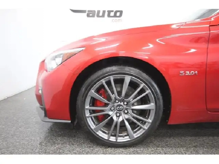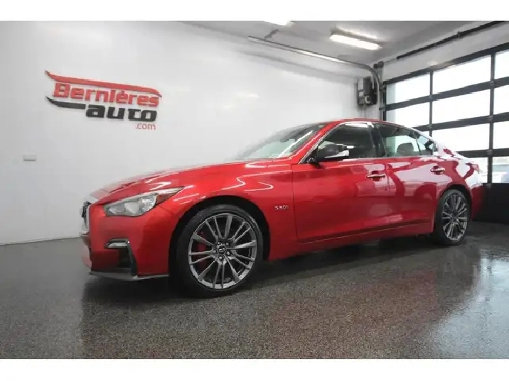 Infiniti Q50 Red Sport AWD 2018 avec moteur 3.0L V6 biturbo developpant 400 HP et transmission automatique 7 vitesses traction integrale. GPS; camera 360; systeme audio Bose 16 haut parleurs; sieges en cuir chauffants; volant chauffant; toit ouvrant; demarrage sans cle; climatisation bizone; regulateur de vitesse adaptatif; mags sport. Infiniti Q50 Red Sport AWD 2018 powered by a 3.0L twin turbo V6 producing 400 HP with 7 speed automatic transmission AWD. Navigation system; 360 camera; Bose 16 speaker sound system; heated leather seats; heated steering wheel; sunroof; push button start; dual zone climate control; adaptive cruise control; sport alloy wheels. Garantie prolongée disponible sur place. Véhicule inspecté avec rapport Carfax. 418-836-5075 | Texto : 418-931-2341 | We speak English | Se habla español | 1-877-836-5075 | bernieresauto.com