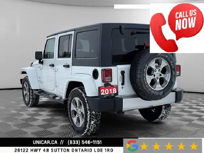 The 2018 Jeep Wrangler JK Unlimited Sahara is a rugged four-door SUV that blends legendary off-road capability with added comfort and style. Powered by a 3.6-liter V6 engine, it delivers reliable performance both on the road and off the beaten path. The Sahara trim stands out with body-color exterior accents, unique wheels, and refined styling that give it a more polished look. Its removable roof and doors offer the classic open-air Jeep experience enthusiasts love. Built for adventure yet comfortable for daily driving, the Wrangler Unlimited Sahara delivers versatility with unmistakable Jeep character.
