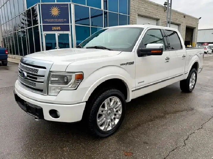2013 FORD F-150 PLATINUM - CREW Cab - 6.5 FT BOX - 3.5L 6 Cyl Gasoline engine - 4x4 - White exterior with brown leather interior PS, PB, AC, AM FM radio, Backup Camera, Tow Hitch, NAVIGATION, SUNROOF—Very well maintained with only 191,000 highway kilometres, Car-Proof. The prices are All-Inclusive, only tax & licensing are extra, and they include Full Comprehensive Inspection, Reconditioning, Safety Check, Full Detailing, and Free Car-proof Report. Selling for $18,900 and applicable tax plus licensing, or best offer! Financing arrangement available for any type of Credit. Sold by a dealer. Call us at 416-839-1558.