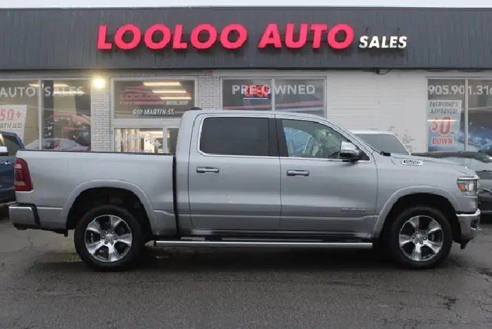 CLEAN CARFAX ONE OWNER ACCIDENT FREE WELL MAINTAINED The Ram Laramie 5.7L HEMI Leaves No Room For Compromise When It Comes To Safety. Equipped With Cutting-Edge Features, Including Advanced Airbags, Stability Control, And A Reinforced High-Strength Steel Frame, It Provides Peace Of Mind For You And Your Loved Ones. Take Command Of The Road With Confidence, Knowing That Ram's Commitment To Safety Is Second To None. Silver on Black Leather Int. --------------------------------------- Finance it for as low as $119/ Weekly (Plus HST) with $0 down payment @6.99% interest rate, for 72 Months O.A.C. --------------------------------------- Fully Loaded with: Apple Carplay, Android Auto, Power Windows, Locks, Mirrors, CD/ AUX, AC/ Dual Climate Control, Bluetooth, Parking Sensors, Navigation System, Rear View Camera, Remote Starter, Heated/Ventilated Leather Seats, Heated Steering Wheel, Blinds Spot Indicators, Remote Starter, Push to Start, ALL THE POWER OPTIONS!! --------------------------------------- Certification is available for an additional $695. If the vehicle is not certified in accordance with OMVIC regulations, it is deemed not drivable and uncertified. This fee ensures the vehicle is certified and in road-worthy condition. --------------------------------------- Our knowledgeable sales team is available to answer any questions. We also welcome trade-ins, with on-site buyers available to estimate your vehicle on the same day. --------------------------------------- Additionally, our vehicles qualify for up to 4 years of extended warranty. Please speak to your sales representative for more information. -------------------------------------- Visit us at 610 Martin Street, Milton, L9T 3H6 or call us at 905-901-3161 for more information. -------------------------------------- Experience why Looloo Auto Sales is leading in crowd favorites!