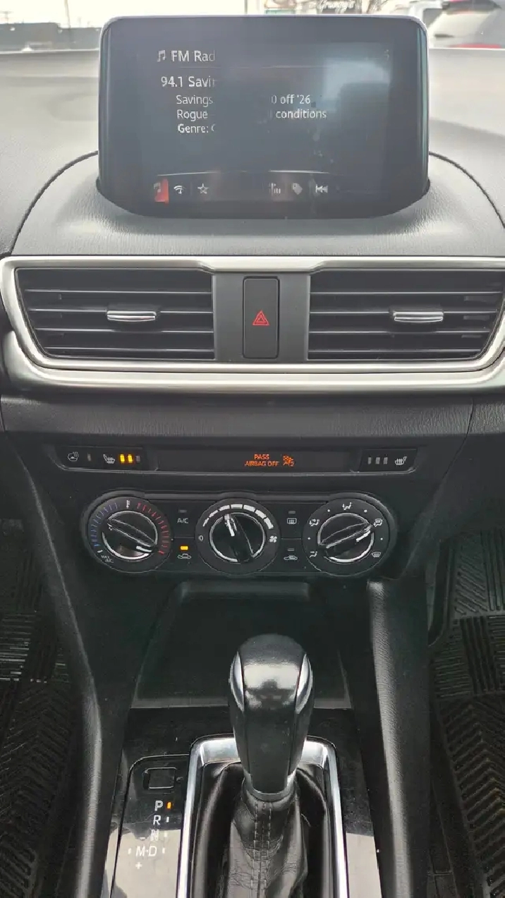 JUST ARRIVED!!! 2018 Mazda3 Sport hatchback. This Mazda3 is fully loaded including black cloth interior, heated front seats, remote start, back-up camera, porximity key with push button start, alloy wheels, Bluetooth, and more! This vehicle has a fresh 3rd party Governement Safety Certification, and SGI and Carfax history is verified. We have 3rd party Saskatchewan Government Saftey Certifications preformed on 99.9% of our inventory, not just out of provicnce vehicles.