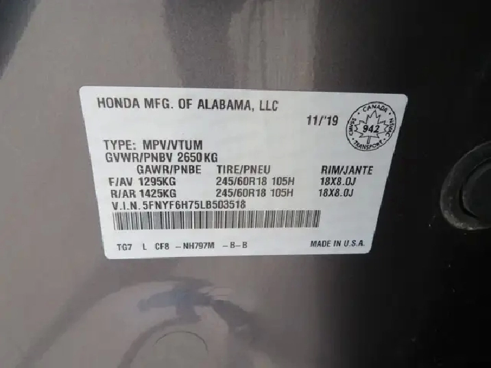 - Engine: 3.5L V6 SOHC 24V i-VTEC -inc: direct injection, Eco Assist system and Variable Cylinder Management (VCM)