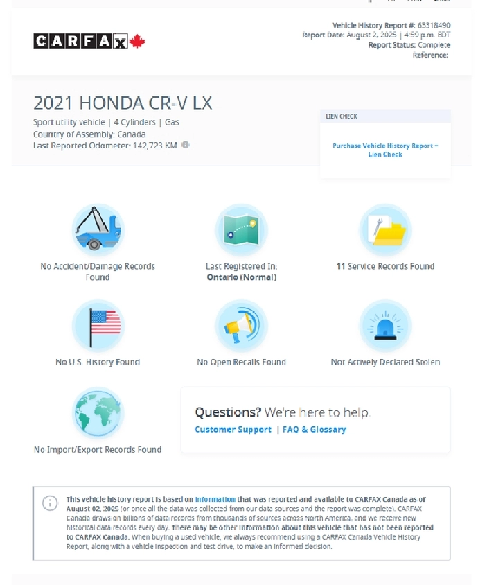 2021 Honda CRV LX AWD in excellent condition. HERE is the Carfax Link: https://www.carfax.ca/myorder/fa16043e21ee4972bd1c3270b72c8966 $21,500.00 email here or text at 647-609-9181