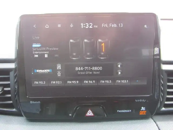 Interior & Tech: 8-inch touchscreen with navigation, Apple CarPlay/Android Auto, and 8-speaker Infinity audio system.