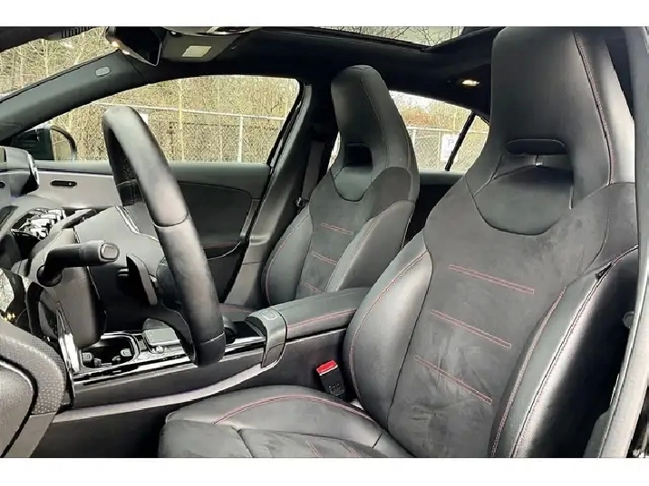 Compact luxury done right, this 2021 Mercedes-Benz A250 in Nocturnal Black delivers a sporty, upscale feel with everyday usability, powered by a responsive 2.0L turbocharged engine producing 221 hp and 258 lb-ft of torque for quick acceleration and confident all-weather traction through Mercedes 4MATIC system. Inside, the AMG Sport Package elevates the cabin with heated Artico Dinamica seats, a heated steering wheel with paddle shifters, memory settings, and customizable ambient lighting that transforms the interior at night, while the panoramic sunroof adds an open, airy feel. Tech is clean and modern with Apple CarPlay and Android Auto, wireless charging, and an intuitive infotainment setup that keeps everything at your fingertips. Safety features like Blind Spot Assist and Collision Prevention Assist Plus add confidence in traffic and on the highway. Finished with AMG exterior styling including a front spoiler and side skirts that give it a sharper, more aggressive stance, and with Clean Carfax history, this A250 is a well-optioned luxury sedan that blends performance, technology, and premium feel in a compact package that stands out.