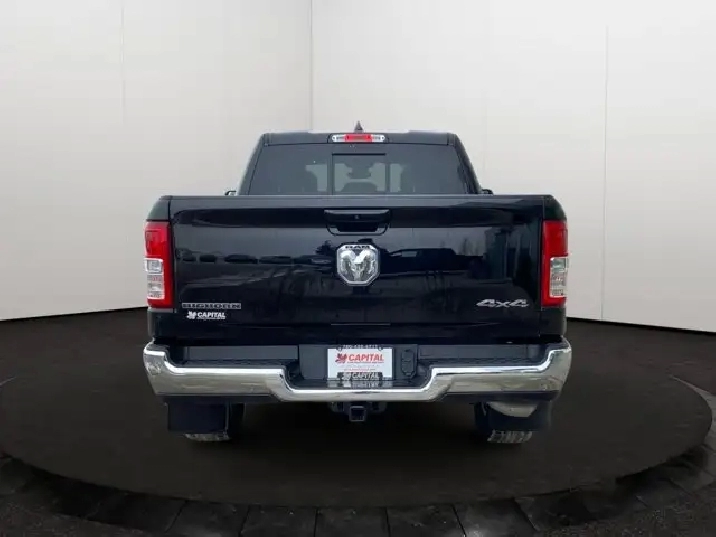 BIG HORN LEVEL 1 EQUIPMENT GROUP -inc: Rear Window Defroster Auto-Dimming Rearview Mirror Power Adjustable Pedals Rear Power Sliding Window Rear Dome Lamp w/On/Off Switch Glove Box Lamp Power 8-Way Driver Seat Universal Garage Door Opener 3.5 Colour In-Cluster Display Radio: Uconnect 5 w/8.4 Display Google Android Auto Hands-Free Phone & Audio SiriusXM Satellite Radio 1-Year SiriusXM Subscription For More Info Call 888-539-7474 USB Mobile Projection Integrated Centre Stack Radio 8.4 Touchscreen Connectivity - US/Canada 4G LTE Wi-Fi Hot Spot Apple CarPlay Capable Class IV Receiver Hitch Sun Visors w/Illuminated Vanity Mirrors Big Horn Instrument Panel Badge Power 2-Way Driver Lumbar Adjust, WHEELS: 18 X 8 ALUMINUM (STD), GVWR: 3 084 KGS (6 800 LBS) (STD), DIAMOND BLACK CRYSTAL PEARLCOAT, 3.55 REAR AXLE RATIO, REAR WHEELHOUSE LINERS, 124.9-LITRE (27.4-GALLON) FUEL TANK, QUICK ORDER PACKAGE 23Z BIG HORN -inc: Engine: 3.6L Pentastar VVT V6 w/eTorque Transmission: 8-Speed Automatic (DFT) Big Horn Badge, DIESEL GREY/BLACK CLOTH FRONT 40/20/40 SPLIT BENCH, TIRES: 275/65R18 BSW ALL SEASON LRR (STD), RADIO: UCONNECT 5 W/8.4 DISPLAY -inc: Google Android Auto Hands-Free Phone & Audio SiriusXM Satellite Radio 1-Year SiriusXM Subscription For More Info Call 888-539-7474 USB Mobile Projection Integrated Centre Stack Radio 8.4 Touchscreen Connectivity - US/Canada 4G LTE Wi-Fi Hot Spot Apple CarPlay Capable, TRANSMISSION: 8-SPEED AUTOMATIC (DFT) (STD), ANTI-SPIN DIFFERENTIAL REAR AXLE, PROTECTION GROUP -inc: Transfer Case Skid Plate Steering Gear Skid Plate Front Suspension Skid Plate Fuel Tank Skid Plate Tow Hooks, ENGINE: 3.6L PENTASTAR VVT V6 W/ETORQUE (STD), Tow Hitch, Power Steering, Four Wheel Drive, Privacy Glass, Heated Mirrors, Daytime Running Lights, 4-Wheel Disc Brakes, Variable Speed Intermittent Wipers, Conventional Spare Tire, Power Folding Mirrors, Integrated Turn Signal Mirrors, Aluminum Wheels, Fog Lamps, Power Door Locks, Bluetooth Connection, Brake Assist, Intermittent Wipers, Power Mirror(s), AM/FM Stereo, Automatic Headlights, ABS, Power Windows, Trip Computer, Power Door Locks, Rear Bench Seat, Pass-Through Rear Seat, Front Side Air Bag, Driver Air Bag, Stability Control, Cloth Seats, Passenger Air Bag Sensor, Cruise Control, Power Door Locks, Telematics, Passenger Vanity Mirror, Passenger Air Bag, Keyless Start, Power Windows, Child Safety Locks, Requires Subscription, Floor Mats, Leather Steering Wheel, A/C, Bluetooth Connection, Steering Wheel Audio Controls, Traction Control, Traction Control, Adjustable Steering Wheel, Rear Head Air Bag, Tire Pressure Monitor, Trip Computer, Keyless Entry, Back-Up Camera, Auxiliary Audio Input, Front Head Air Bag, Passenger Illuminated Visor Mirror, MP3 Player, Immobilizer, Split Bench Seat
