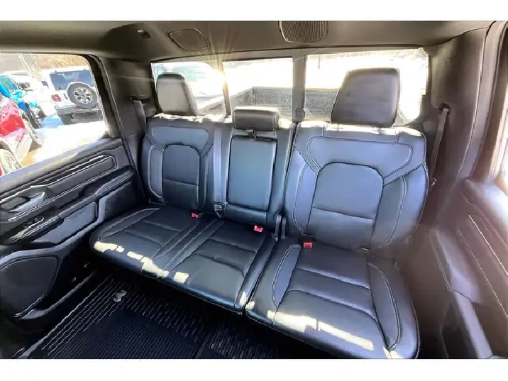 Muscle, attitude, and the right hardware, this 2022 Ram 1500 Rebel Crew Cab 4X4 in Diamond Black Crystal Pearl is built to feel like a performance truck that can still handle real work, starting with the 5.7L HEMI V8 pushing 395 hp and 410 lb-ft of torque for instant throttle response and effortless highway passing. Inside, the Luxury leather-faced bucket seats, heated front seats, heated steering wheel, and Mopar all-weather floor mats make it a year-round daily driver, while the massive 12-inch Uconnect touchscreen with navigation, wireless Apple CarPlay and Android Auto, and the 9-speaker Alpine system turn every commute into a premium, connected experience. Tech that matters like Forward Collision Warning adds confidence in stop and go traffic and on longer drives. The Night Edition dials up the curb appeal with blacked-out styling cues that make the Rebel’s aggressive stance look even tougher. When it is time to tow or hit the trail, you have a Class IV hitch receiver, Rebel-only 3.92 gearing, and an electronic locking rear axle to put power down when traction is limited, plus a Sport Performance Hood, Mopar spray-in bed liner, Mopar black running boards, and brand-new BFGoodrich KO3 tires to back up the look with real capability. One Owner and No Collisions, this is a properly optioned Rebel that delivers the full V8 4X4 experience with standout style and serious long-term desirability.