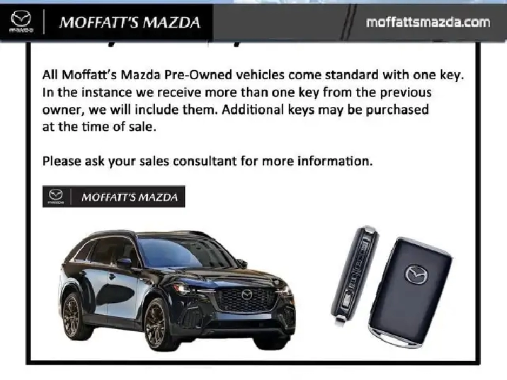 Moffatts has been proudly selling new & pre-owned vehicles for over 66 years and are one of the longest family run dealerships. We service Barrie, Orillia, Wasaga Beach, Collingwood, Stayner, Meaford, Elmvale, Owen Sound, Toronto, Mississauga, Brampton, North Bay, Huntsville, Bracebridge, Sudbury, Orangeville, Port Elgin & Surrounding Areas with one the largest quality new & pre-owned inventory selection, we're sure to have what you are looking for and if we dont we'll surely find it for you!. Flexible finance options are available on all pre-owned purchases, which also come standard with the following: - Safety Certification as per Ministry of Transportation Standards & Reconditioned by Factory Trained Technicians (Unless Being Sold "AS lS") and our very own Moffatts Mazda Service Rewards Program FREE Enrollment (5% Cash Back).