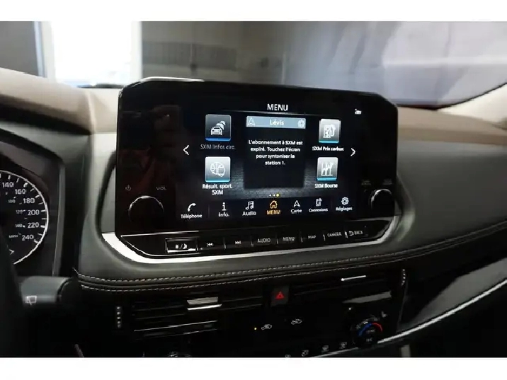 • Radio : chaîne audio AM/FM avec 6 haut-parleurs -comprend : nissanConnect avec connexion sans fil Apple CarPlay et Android Auto, écran couleur de 9 po commande tactile multifonction, 2 ports USB de recharge à l'avant et 2 ports USB de recharge à l'arrière (1 de type A et 1 de type C), système téléphonique mains libres Bluetooth et lecture audio en continu, Siri Eyes Free, reconnaissance vocale, messagerie texte mains libres et Alexa intégré