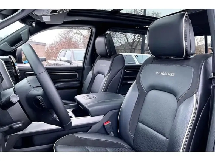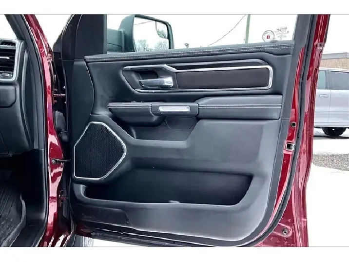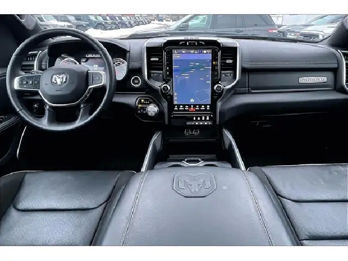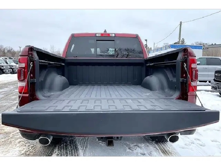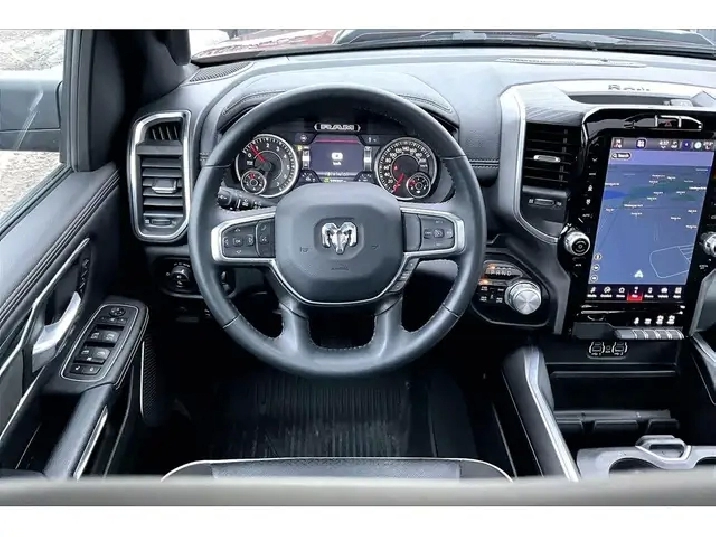 A 2023 Ram 1500 Laramie Sport Crew Cab 4X4 with only 20,000 km is exactly the kind of truck buyers wait for, especially with the legendary 5.7L HEMI V8 delivering 395 hp and 410 lb-ft of torque for effortless passing power, confident merging, and that classic V8 feel every time you roll into the throttle. Inside, Level 1 and the Sport package nail the upscale, driver-focused vibe with heated and ventilated leather bucket seats, a heated steering wheel, remote start, and the massive 12-inch Uconnect 5 NAV touchscreen that keeps maps, media, and calls clean and intuitive, while the 9-speaker Alpine system and panoramic dual-pane sunroof make every commute feel like a premium escape. Safety tech like Blind Spot Monitoring, Forward Collision Warning, and Park-Sense parking sensors adds real peace of mind in traffic and tight lots. Finish it off with true usability from the Bed Utility Group, Mopar spray-in bedliner, deployable bed step, tubular side steps, Class IV hitch, and all-weather mats, and with One Owner, Clean Carfax history, this Red Pearl Laramie Sport is a sought-after, low-km, fully loaded truck that checks the boxes for performance, comfort, and long-term value.