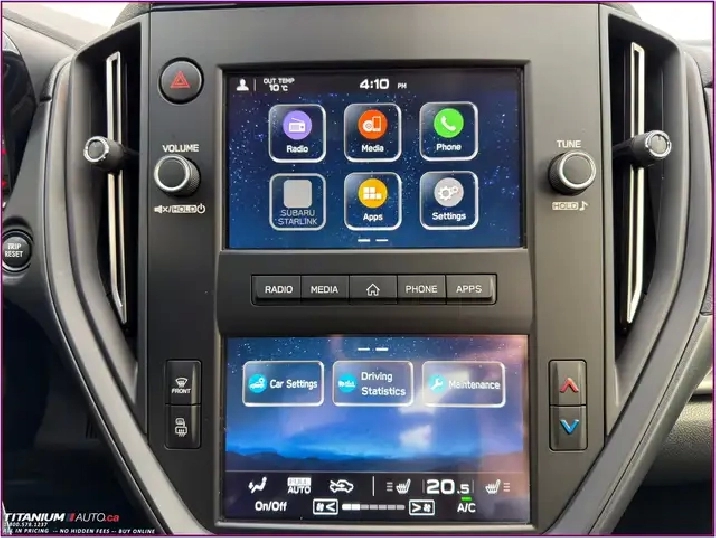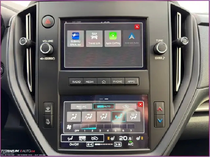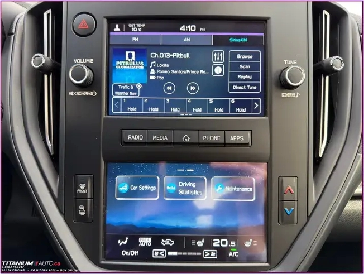 - Radio: AM/FM/MP3/WMA Audio System -inc: 7.0" touch-screen infotainment system (dual), Apple CarPlay and Android Auto functionality, integrated steering wheel audio controls, radio data system, SiriusXM Satellite Radio w/Travel Link (free 3-month trial subscription included), USB-A (x2) ports in front, Bluetooth mobile phone connectivity w/voice activation and Bluetooth streaming audio, auxiliary audio input in centre console and 6-speaker system