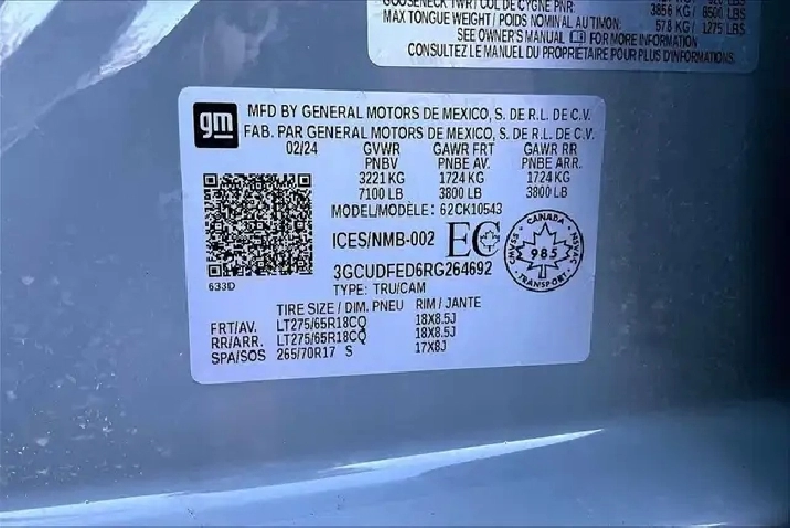 • GVWR, 7000 lbs. (3175 kg) (Requires (L3B) 2.7L TurboMax engine.)