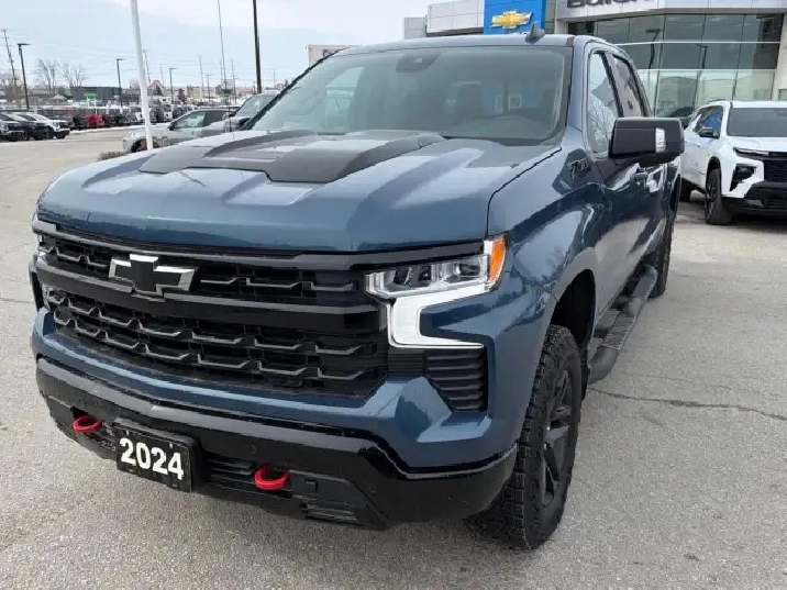 One Owner, Trailboss, 5.3L, Z71 Off-Road Pkg W/Factory 2" Lift, Convenience Pkg II, Safety Pkg, Side Steps, Blackout Pkg, Bucket Seats, Bose Sound System, Lakeshore Blue Metallic, Nice Truck!This Truck was Purchased from GM & Qualifies for Special Certified Pre-Owned Rates! 0.9% up to 24 Mo's, 3.99% - 36 Mo's, 4.49% - 48 Mo's, 4.99% up to 72 Mo's & 5.49% - 84 Mo's!!!Meet the 2024 Chevrolet Silverado 1500 LT Trail Boss, a striking blue masterpiece with a 4×4 drivetrain ready to tackle any terrain. This Crew Cab Short Box truck combines rugged capability with refined handling for those who love a powerful drive.The exterior boasts a commanding presence with its robust body type and stylish alloy wheels, ensuring you make a statement on the road. Inside, comfort meets sophistication with heated seats, a heated steering wheel, and power-adjustable seating, providing a luxurious ride for both driver and passengers.Keeping you connected and entertained, this truck features a modern infotainment system with Bluetooth connection, smart device integration, and a Wi-Fi hotspot. Safety is paramount, with a backup camera, lane assist, and keyless entry offering peace of mind on every journey.This Silverado 1500 is perfect for adventurers and those needing a reliable workhorse. Contact us today to learn more and secure this versatile vehicle for your next journey.