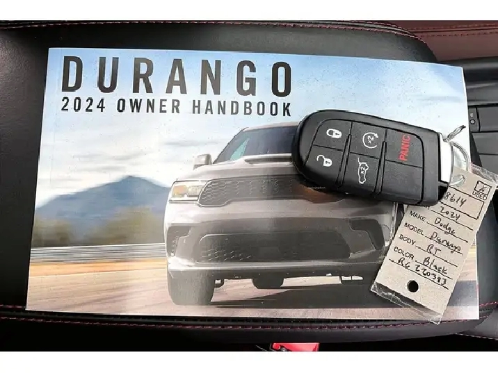 2024 Dodge Durango R/T Plus AWD | 5.7L V8 | DB Black | Blacktop Package | Heated & Ventilated Nappa Leather Seats | 6 Passenger Seating w/ Second Row Captain Chairs | Uconnect 5 10.1 Display w/ Navigation | 19-speaker Harman/Kardon High Performance Audio System | Power Sunroof | Dinamica Suede Headliner | Forged Carbon Fibre Interior Accents | Wireless Apple CarPlay & Android Auto | Wireless Charging | Adaptive Cruise Control | Lane Keep Assist | Forward Collision Warning | Blind Spot Monitoring | Heated Steering Wheel | Remote Start | Power Liftgate | Parking Sensors | Blind Spot Monitoring