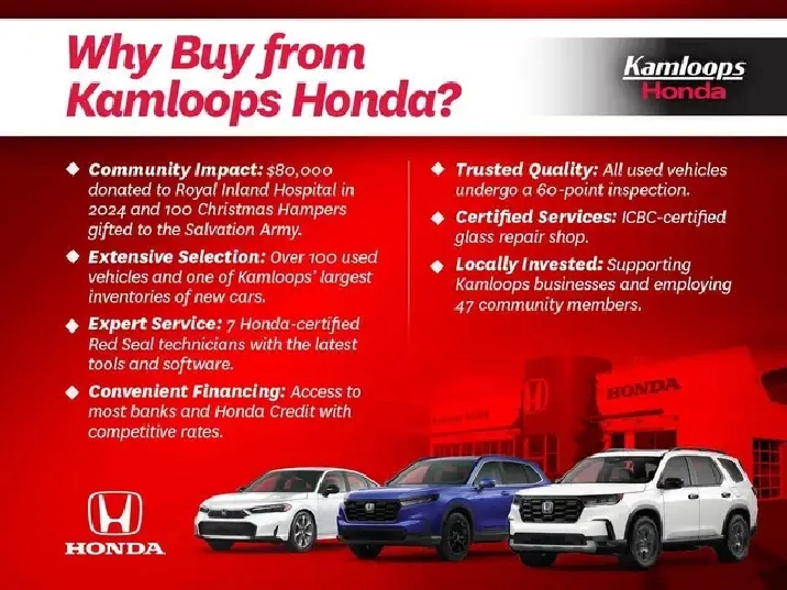 Pre-Owned 2024 Ford F-150 XLT - Navigation | Bench Seats | Wi-Fi/Bluetooth Connections | Cloth Interior This pre-owned 2024 Ford F-150 XLT offers power, comfort, and capability, powered by a 3.5L engine, a tow package, a 10-speed automatic transmission, and a 4x4 drive system. The cloth interior features a navigation system, bench seating, and smart device integration via Wi-Fi and Bluetooth connectivity. Safety provides peace of mind with a backup camera, parking sensors, blind spot monitoring, and more! Every pre-owned vehicle in our inventory undergoes a thorough multi-point inspection, providing you with a detailed Carfax vehicle history report, ensuring you drive away with total confidence and peace of mind. With over 25 years of dedicated service to the greater Kamloops area, we take pride in offering our valued and diverse customers the finest selection of new and pre-owned Honda and non-Honda vehicles in Kamloops! Our committed Honda team members and Honda Certified technicians are here to make your shopping experience enjoyable, effortless, and rewarding. Whether you need a new Honda vehicle, parts or service for your current vehicle, Kamloops Honda is here to assist you with any of your automotive needs. Call or visit us at 1308 Josep Way, Kamloops, BC, to book or take a test drive today! *Doc Fee $695*