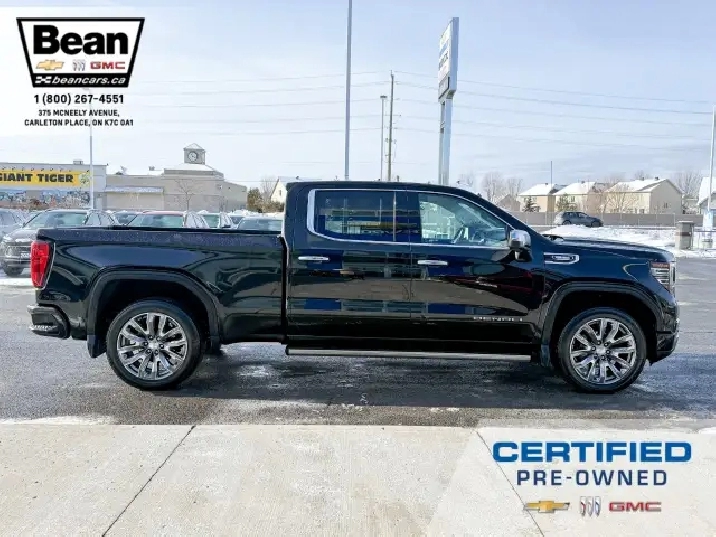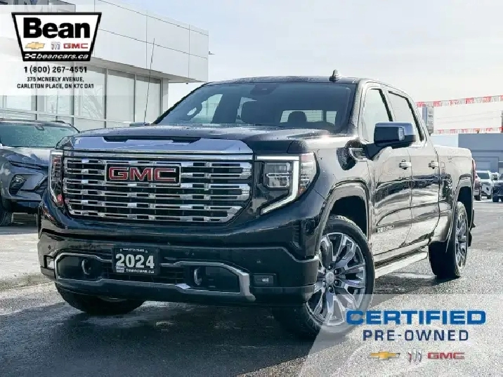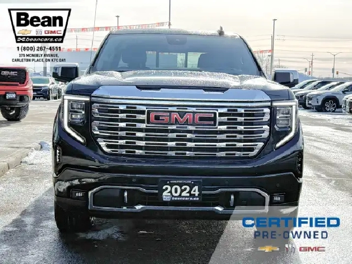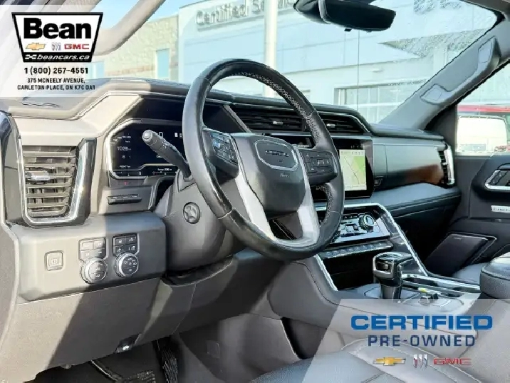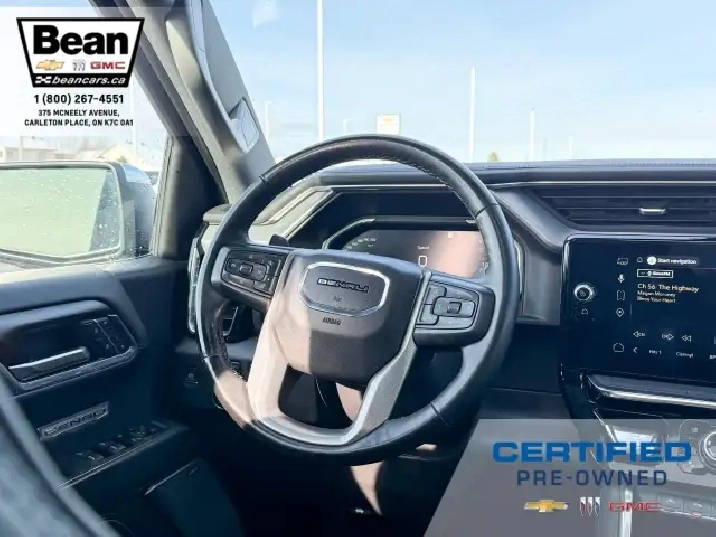 We have a sharp 2024 GMC Sierra Denali with the 3.0L 6Cyl Duramax Diesel engine! This truck is a beauty that is loaded with features like the Denali Reserve Package which includes the rear camera mirror, multicolour 15 diagonal head up display, power sunroof, GMC Multipro power side steps and 22 alloy wheels. There is also heated and ventilated front leather seats, heated second row seating, a heated leather wrapped steering wheel, adaptive cruise control, Bose premium sound system, Denali premium suspension as well as a trailering package. There is also the GMC Pro Safety Package which includes forward collision alert, following distance indicator, front pedestrian braking, Intellibeam headlamps, lane keep assist with lane departure warning and automatic emergency braking. This truck has it all!
