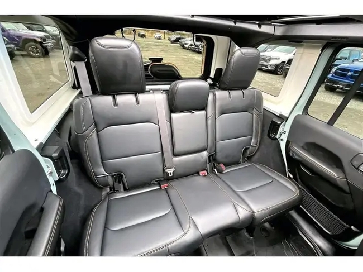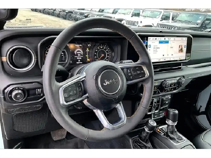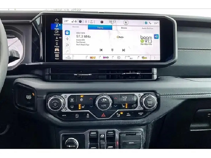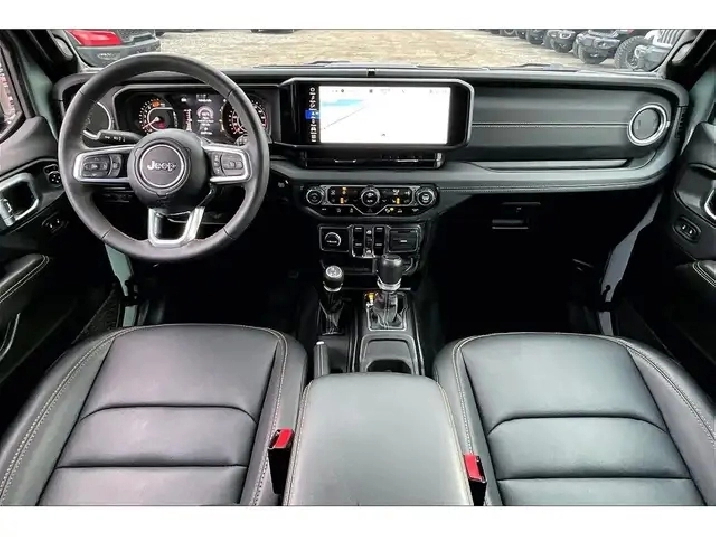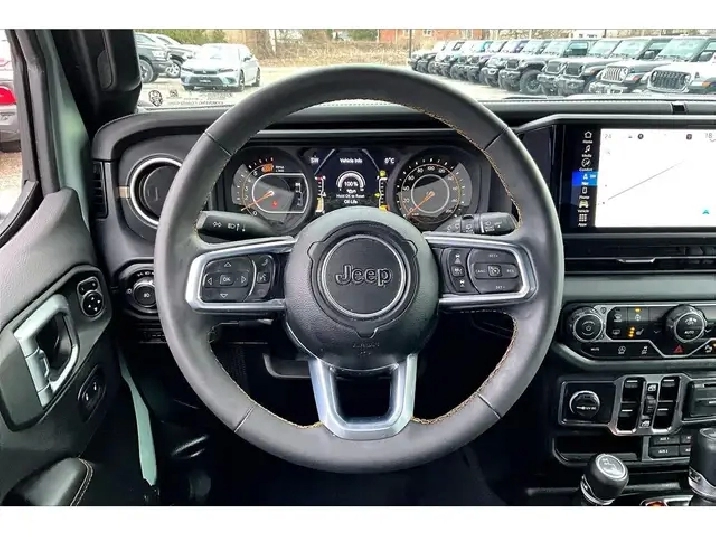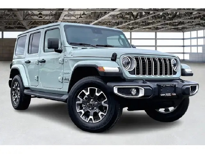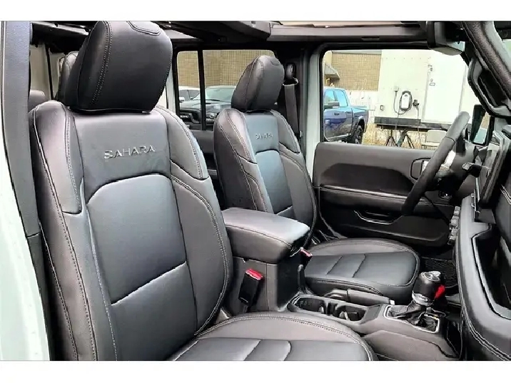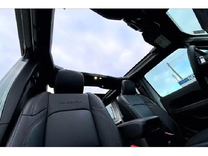 If you have been waiting for the right Wrangler, this is the one, a fully loaded 2024 Jeep Wrangler Sahara 4X4 in the highly sought-after Earl colour, easily one of the most desirable and hardest-to-find specs on the market right now. Powered by the 2.0L turbocharged engine delivering 270 hp and 295 lb-ft of torque, it gives you that perfect balance of responsive acceleration and everyday drivability while still staying true to Jeeps capability roots. Inside is where this one separates itself, featuring premium McKinley leather bucket seats, heated seats, a heated steering wheel, remote start, and the massive 12.3-inch Uconnect system with navigation, wireless Apple CarPlay and Android Auto, and Alpine premium audio, creating a cabin that feels modern, upscale, and built for daily use. The Sky One Touch power top is the standout feature, letting you open up the entire roof in seconds at the push of a button, transforming every drive without the hassle of removing panels. With Safety and Technology Groups adding Adaptive Cruise Control, Forward Collision Warning, Blind Spot Monitoring, Park-Sense, and an integrated off-road camera, it is just as confident in traffic as it is on the trail. Finished with LED lighting and equipped with the Trailer Tow Group, this is the highest-spec Sahara you can get, and with One Owner, Clean Carfax history, it is a rare opportunity to own a fully optioned Wrangler in the exact colour enthusiasts are searching for.