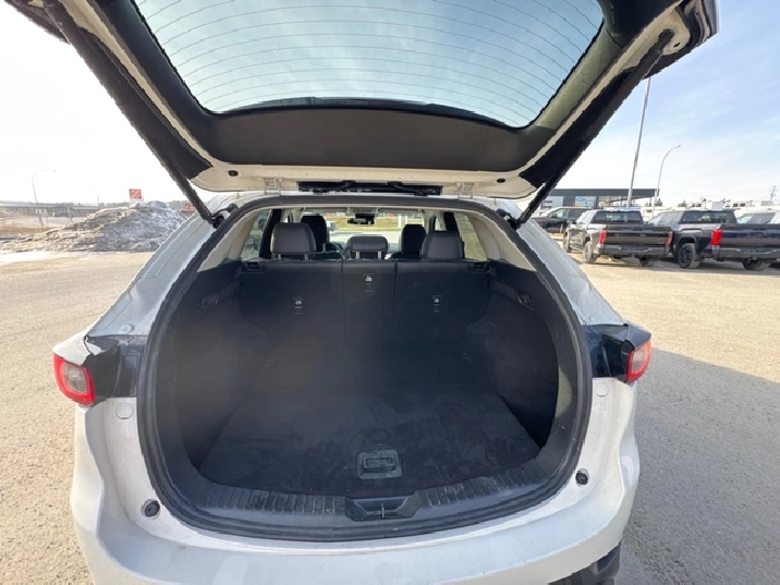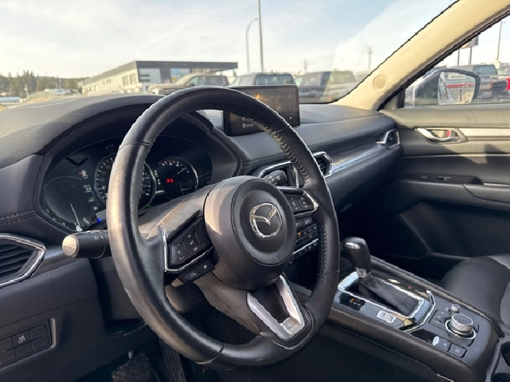 Our CX-5's trim level is GS. This GS trim really ups the comfort and convenience with features like a power liftgate, heated steering wheel, and synthetic leather upholstery. This CX-5 comes with heated seats for a cozy cabin, alongside Android Auto, Apple CarPlay, and even more infotainment tech for endless engagement. An assistive suite helps you stay safe with lane keep assist, blind spot monitoring, and distance pacing cruise with stop and go. Fog lamps help on those dreary days, while a rearview camera makes sure you always park safely. Do it all in style with chrome trim and aluminum wheels. This vehicle has been upgraded with the following features: Power Liftgate, Synthetic Leather Seats, Heated Seats, Apple CarPlay, Android Auto, Navigation, Adaptive Cruise Control.