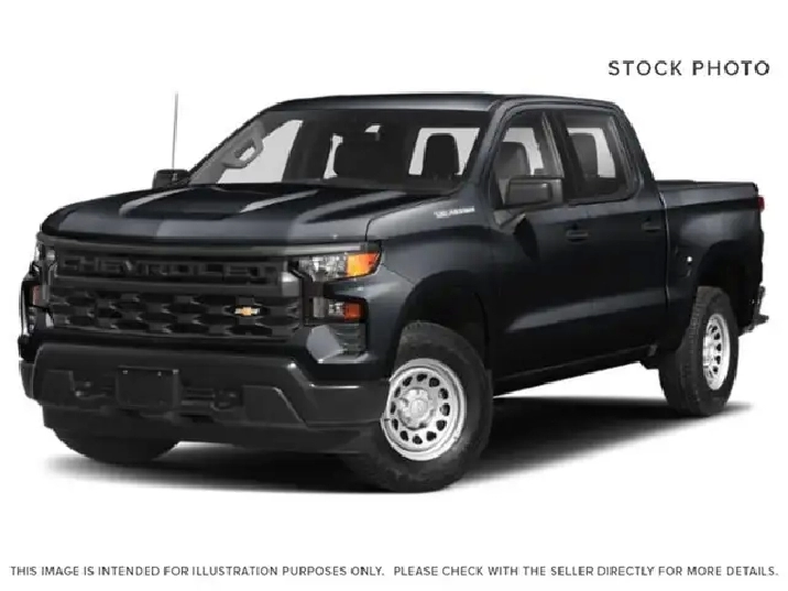 | Multi-Flex Tailgate | 13.4 Infotainment w/ Google Built-In | Bose Premium Audio | Power Sunroof | Trailering App & Hitch View | Finished in Black with a refined Jet Black interior, this 2025 Chevrolet Silverado 1500 Short Box Crew Cab 4WD delivers a confident blend of capability, comfort, and advanced technology. The exterior is equipped with 20-inch gloss black aluminum wheels, off-road appearance enhancements, LED headlamps and fog lamps, a power sunroof, corner step rear bumper, EZ Lift power lock and release tailgate, and the versatile Multi-Flex tailgate, giving this truck a bold and functional presence. Inside, the cabin features front bucket seats with centre console, heated front seats, heated steering wheel, leather-appointed seating surfaces, dual-zone automatic climate control, wireless charging, power sliding rear window, rear seat storage, and a 12-inch reconfigurable digital driver information display. Technology is anchored by the 13.4-inch Chevrolet Infotainment 3 Premium system with Google Built-In, wireless Apple CarPlay and Android Auto, SiriusXM capability, Bose premium sound system, and multiple USB charging ports throughout the cabin. Safety and trailering confidence are enhanced with Chevy Safety Assist, forward collision alert, automatic emergency braking, front pedestrian braking, lane keep assist with lane departure warning, adaptive cruise control, HD rear vision camera, trailer brake controller, hitch guidance with hitch view, and the integrated Trailering App, making this Silverado a well-rounded truck for work, towing, and everyday driving. Disclosure: This vehicle was previously a rental vehicle. Stock #X1162A AMVIC LICENSED DEALER