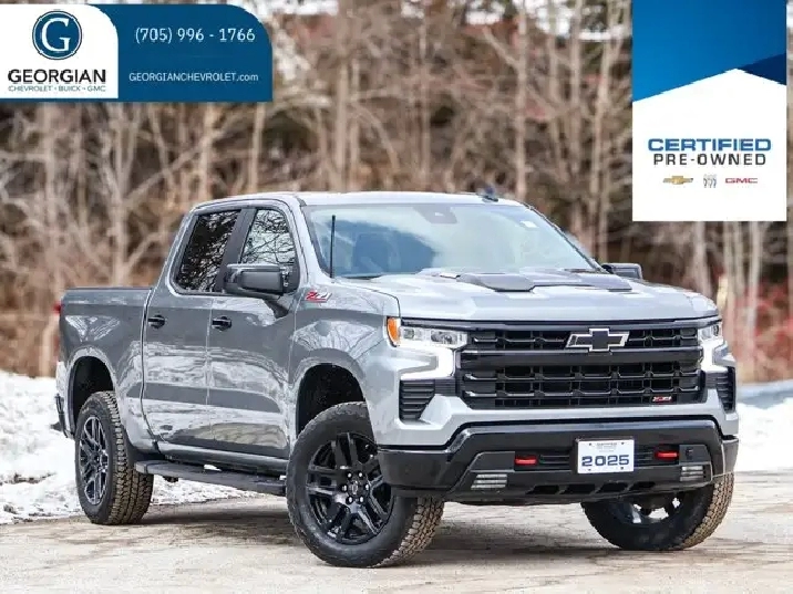 Introducing the 2025 Chevrolet Silverado 1500 LT Trail Boss, a robust and versatile pickup truck designed for the Canadian landscape. This previously owned, four-door powerhouse combines rugged capability with modern comforts, making it an ideal choice for drivers who need a reliable vehicle for work or play. With its distinctive silver exterior, this Silverado stands out whether you're navigating city streets or heading off the beaten path.