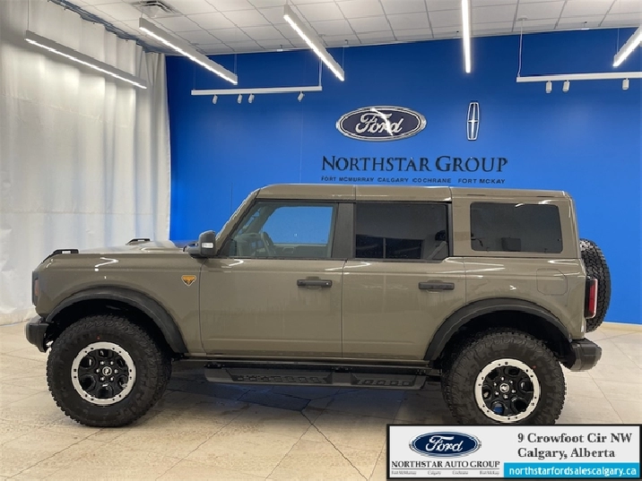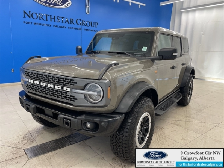 Our Bronco's trim level is Badlands. Go the distance over any terrain in this Bronco Badlands, with even more undercarriage protection, robust Bilstein shock absorbers, front active anti-roll bars, front and rear tow hooks, and an assortment of upfitter switches. The seats are lined with marine-grade vinyl, with rubber floor covering, for easy rinsing after your intense off-road sessions. Other features include a manual targa composite 1st row sunroof, a manual convertible hard top with fixed rollover protection, a flip-up rear window, LED headlights with automatic high beams, and proximity keyless entry with push button start. Connectivity is handled by a 12-inch LCD screen powered by SYNC 4 with inbuilt navigation, wireless Apple CarPlay and Android Auto, with SiriusXM satellite radio. Additional features include towing equipment including trailer sway control, pre-collision assist with pedestrian detection, forward collision mitigation, a rearview camera, and even more. This vehicle has been upgraded with the following features: Navigation, LED Lights, Aluminum Wheels, Sunroof, Off-Road Suspension, Apple CarPlay, Android Auto.