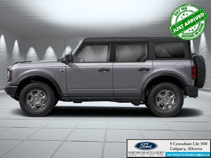 Our Bronco's trim level is Big Bend. This Bronco Big Bend comes with unique aluminum wheels with a full-size spare, front fog lamps and a leather-wrapped steering wheel, in addition to fantastic standard features such as off-roading suspension, a comprehensive terrain management system with switchable drive modes, a manual targa composite 1st row sunroof, a manual convertible hard top with fixed rollover protection, a flip-up rear window, LED headlights with automatic high beams, and proximity keyless entry with push button start. Connectivity is handled by an 12-inch LCD screen powered by SYNC 4 with Navigation, wireless Apple CarPlay and Android Auto, with SiriusXM satellite radio. Additional features include towing equipment including trailer sway control, pre-collision assist with pedestrian detection, forward collision mitigation, a rearview camera, and even more. This vehicle has been upgraded with the following features: Navigation, Aluminum Wheels, Off-Road Suspension, Apple CarPlay, Android Auto, Forward Collision Alert, Rear Camera.