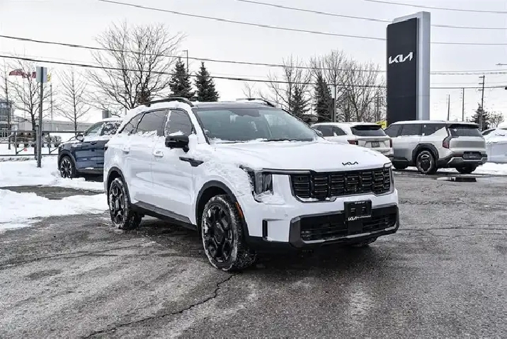 The 2025 Kia Sorento X Line Limited AWD takes the already versatile Sorento formula and turns up both capability and refinement in the competitive three-row SUV segment. Powered by a 2.5-liter turbocharged four-cylinder paired with an 8-speed dual-clutch automatic and standard all-wheel drive, it generates a robust 281 hp and 311 lb-ft of torque for confident passing and towing up to about 3,500 lb — perfect for family gear or weekend toys. What truly separates the X Line Limited from lower trims and many rivals is its blend of rugged-ready design with premium appointments: aggressive X-Line styling cues, increased ground clearance, 20-inch wheels with all-terrain tires, and torque-vectoring AWD give it an adventurous edge, while real leather, a 14-speaker Bose® audio system, panoramic sunroof, head-up display and 360° camera systems elevate comfort and tech. Compared with rivals like the Toyota Highlander XSE or Honda Pilot Elite, the Sorento X Line Limited strikes a rare balance of off-pavement capability and on-road refinement, making it a compelling choice for drivers who want family-friendly utility without sacrificing style or sophistication.