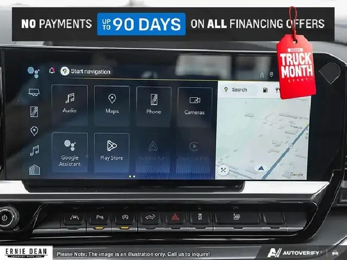• Audio system, Chevrolet Infotainment 3 Premium system with Google built-in compatibility (select service plan required, terms and limitations apply) including navigation capability, 13.4" diagonal HD colour touchscreen, includes multi-touch display, AM/FM stereo, Bluetooth streaming audio for music and most phones; featuring Wireless Apple CarPlay and Wireless Android Auto capability for compatible phones, advanced voice recognition, in-vehicle apps, personalized profiles for infotainment and vehicle settings
