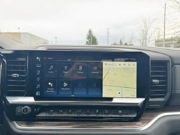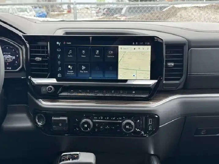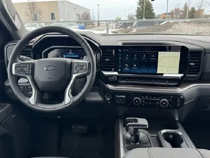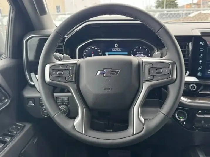 Step inside the Silverado 1500 RST and experience a blend of comfort and cutting-edge technology. The spacious interior features bench seating with a cloth finish, ensuring comfort for all passengers. The climate control system, along with rear air and heat, keeps the cabin at the perfect temperature, no matter the season. Stay connected and entertained with the AM/FM stereo, satellite radio, and navigation system, all easily accessible via steering wheel audio controls. The heated steering wheel adds an extra touch of luxury, particularly appreciated during those cold Canadian winters.