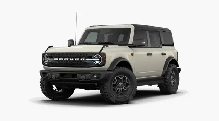 This brand new DESERT SAND 2026 FORD BRONCO BADLANDS is powered by a 2.7L ECOBOOST V6 ENGINE THAT'S PAIRED WITH A 10-SPD AUTO TRANSMISSION.
