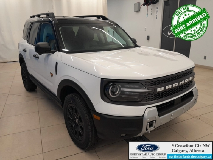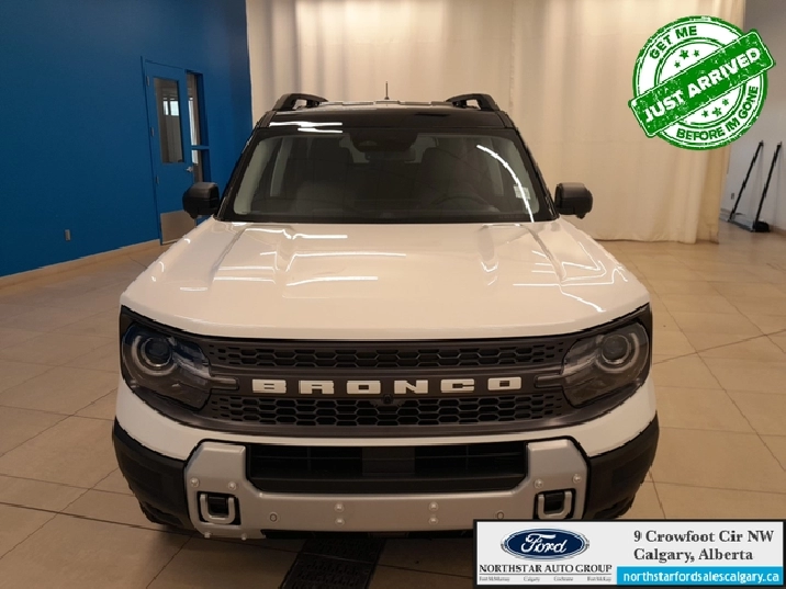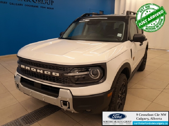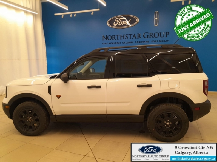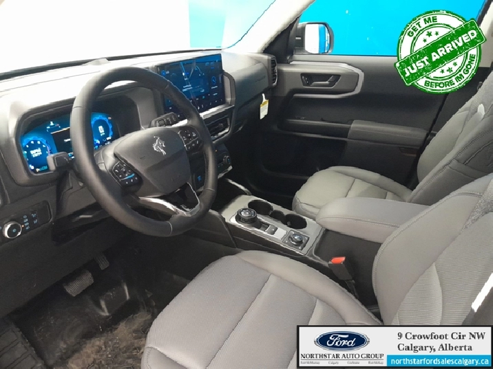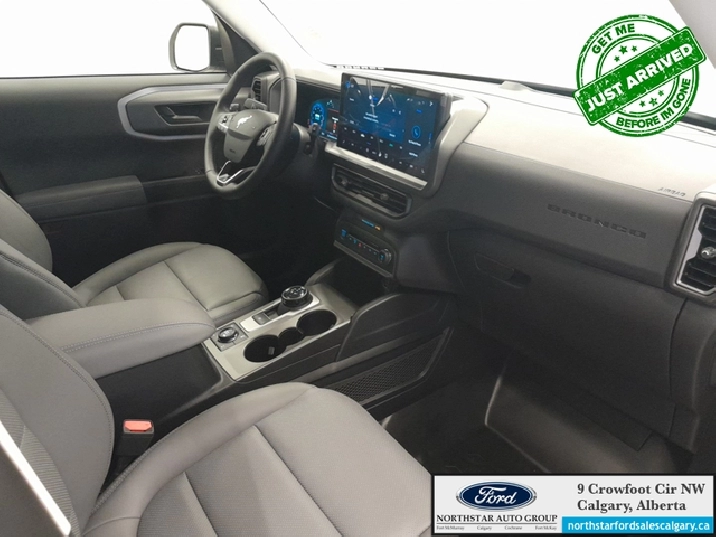 Our Bronco Sport's trim level is Badlands. The cabin features leather-trimmed heated sport contour seats with power adjustments and memory settings, complemented by a heated leather steering wheel and dual-zone automatic climate control for all-season comfort. The SYNC 4 infotainment system with a 13.2-inch touchscreen, wireless Apple CarPlay and Android Auto, Alexa integration, and adaptive cruise control with stop-and-go ensures effortless connectivity and convenience. Versatile interior design, thoughtful storage solutions, and remote start functionality enhance everyday usability, while durable vinyl flooring and rubberized mats make it easy to clean after any adventure. On the outside, bold 17-inch matte black aluminum wheels, all-terrain tires, LED headlights, and dual tow hooks highlight its capability and confidence. The Terrain Management System offers seven G.O.A.T. modes, including rock crawl and rally, supported by a rear locking differential and electro-mechanical limited-slip technology for precise traction on any surface. Ford Co-Pilot360 safety features provide comprehensive protection with BLIS, Pre-Collision Assist with Automatic Emergency Braking, Evasion Assist, an Aerial View Camera System, and Reverse Brake Assist, ensuring complete confidence whether navigating city streets or tackling rugged trails. This vehicle has been upgraded with the following features: 360 Camera, Heated Steering Wheel, Remote Start, Fog Lamps, Heated Seats, Adaptive Cruise Control, Lane Keep Assist.