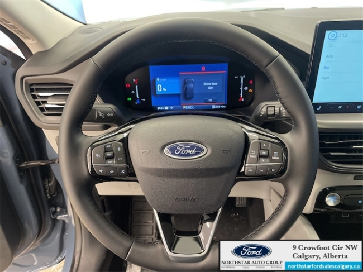 Our Escape's trim level is PHEV. With an extremely efficient yet potent plug-in hybrid powertrain with fast charging, this Escape PHEV features heated front seats with ActiveX synthetic leather upholstery, a heated leatherette steering wheel, adaptive cruise control, remote engine start, and an upgraded 13.2-inch infotainment system now with an integrated navigation system, along with wireless Apple CarPlay and Android Auto. Safety technology also receives an upgrade, with reverse parking sensors, intersection assist and evasive steering assist, along with blind spot monitoring, lane departure warning with lane keeping assist, front and rear collision mitigation, and driver monitoring alert. Additional features include power heated side mirrors, front fog lamps, roof rack rails, and so much more. This vehicle has been upgraded with the following features: Hybrid, Navigation, Heated Seats, Adaptive Cruise Control, Remote Start, Android Auto, Power Liftgate.