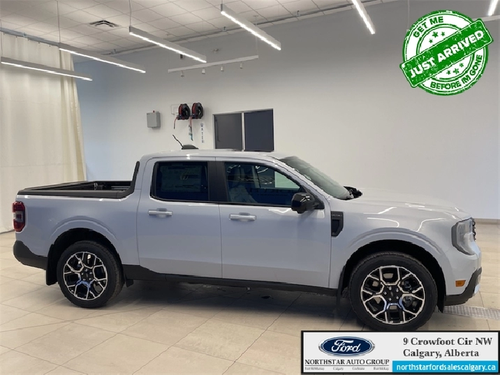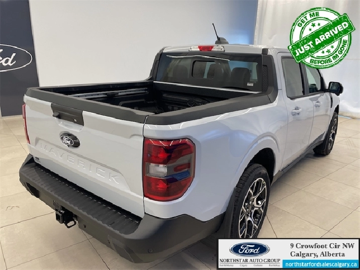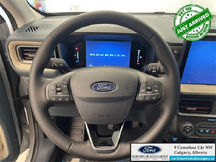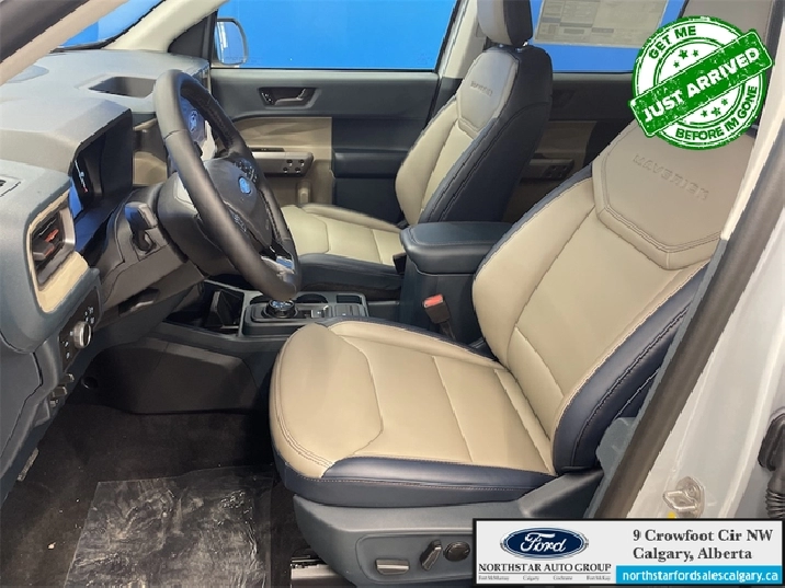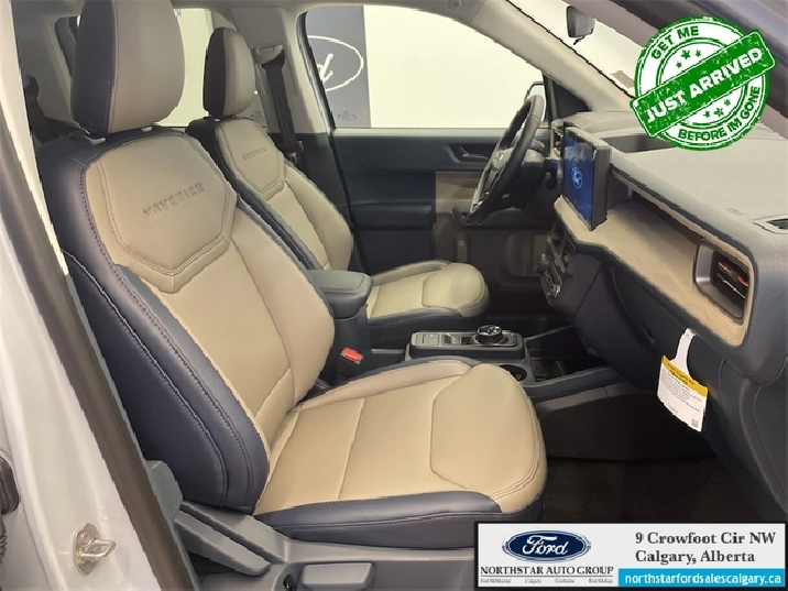 Our Maverick's trim level is Lariat. This advanced hybrid pickup truck blends capability, efficiency, and premium technology, offering all-wheel drive, Class I towing with trailer sway control, spray-in bed liner, integrated storage, and a 1,500 lb maximum payload for confident hauling and utility. Inside, ActiveX heated front bucket seats with power lumbar, a heated leatherette steering wheel, voice-activated dual-zone automatic climate control, and a 13.2" SYNC 4 display with B&O sound, wireless Apple CarPlay/Android Auto, SiriusXM Traffic, connected navigation, 5G Wi-Fi hotspot, and keyfob remote start create a connected and comfortable cabin. Safety is exceptional with Ford Co-Pilot360 technologies including blind-spot assist, lane centering and lane-keeping aid, adaptive cruise with stop-and-go, aerial view and multiple cameras, reverse brake assist, pre-collision assist with automatic emergency braking and intersection support, front cross-traffic mitigation, front/rear parking sensors, Safety Canopy airbags, and electronic stability control with roll stability management. This vehicle has been upgraded with the following features: B&O Premium Audio, Navigation, 360 Camera, Heated Seats, Heated Steering Wheel, Adaptive Cruise Control, Blind Spot Detection.
