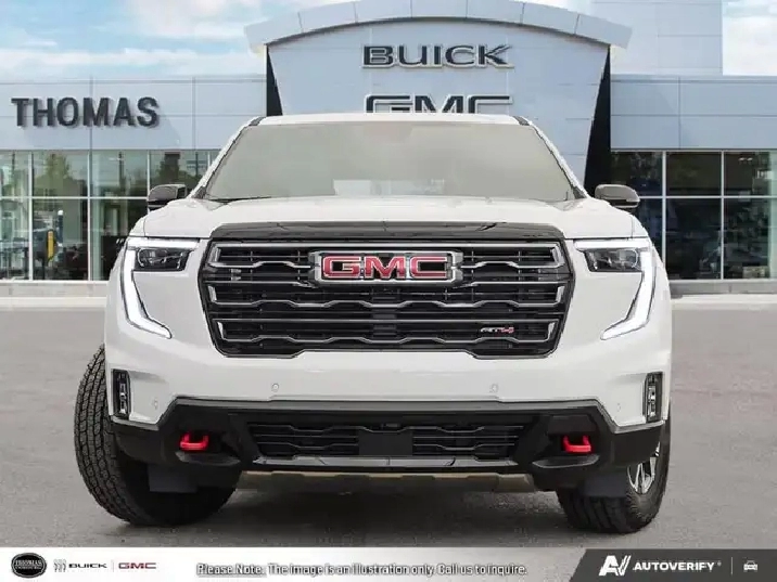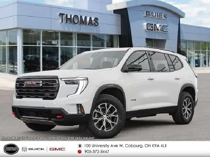 Bose Premium Audio, Wireless Charging, Heated Seats, Heated Steering Wheel, Power Liftgate, Remote Start, Adaptive Cruise Control, Lane Keep Assist This GMC Acadia offers generous occupant space, stellar driving capabilities and excellent fuel economy, with plenty of features and the right amount of luxury. Wherever the roads lead, go confidently in this 2026 GMC Acadia. This SUV offers versatile space and impressive functionality that are seamlessly blended with style, safety, and top notch technology. This Acadia makes a strong impression with its confident stance and bold styling from front to back and its details, big or small, make it a truly distinctive crossover vehicle. This Summit White SUV has an Automatic transmission and is powered by a 2.5L I4 16V GDI DOHC Turbo engine. Motivated by that muscular motor it gets 12.3 L/100 km in the city and 9.9 L/100 km out on the highway according to Transport Canada. Our Acadia's trim level is AT4. Standard features include trailing equipment with hitch guidance and a tow hitch, the Driver Convenience Package with heated front seats, a heated steering wheel, remote start and a power liftgate for rear cargo access, Assisted Driving Package with lane keeping assist with lane departure warning, automatic emergency braking, and adaptive cruise control. Also standard include a wireless charging pad for mobile devices, a 12-speaker Bose premium audio system, a 15-inch infotainment screen with navigation capability, Apple CarPlay and Android Auto, and even more! 4.79% financing for 84 months. Buy this vehicle now for the lowest weekly payment of $224.36 with $0 down for 84 months @ 4.79% APR O.A.C. Plus applicable taxes - Plus applicable fees . Incentives expire 2026-03-02. See dealer for details. LEASING:Estimated Lease Payment: $244 weekly Payment based on 6.9% lease financing for 48 months with $0 down payment on approved credit. Total obligation $50,951. Mileage allowance of 16,000 KM/year. Offer expires 2026-03-02.Prices include all fees except HST and license. PLEASE NOTE: Fee specifications and availability are subject to change without notice. Contact dealer for most current information.*Fuel consumption ratings and estimates based on GM testing in accordance with Government of Canada approved test methods. Refer to vehicles.nrcan.gc.ca for details.Your actual fuel consumption may vary.While we make every effort to ensure the data listed here is correct, there may be instances where some of the pricing, options or vehicle features may be listed incorrectly as we get data from multiple data sources. Please confirm the details of this vehicle with the dealer to ensure its accuracy. Dealer cannot be held liable for data that is listed incorrectly. Vehicles Displayed in any stock photos are not the actual vehicle and do not represent the actual vehicle. Please see dealer for more details Come by and check out our fleet of 20 used cars and trucks and 360 new cars and trucks for sale in Cobourg. o~o