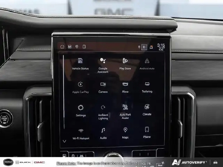 - 15" diagonal Premium GMC Infotainment System with high contrast display, with Google built-in compatibility, including navigation capability, colour touch-screen, multi-touch display, connected apps, personalized profiles for each driver's settings, Natural Voice Recognition and Phone Integration for Wireless Apple CarPlay/Wireless Android Auto for compatible phones