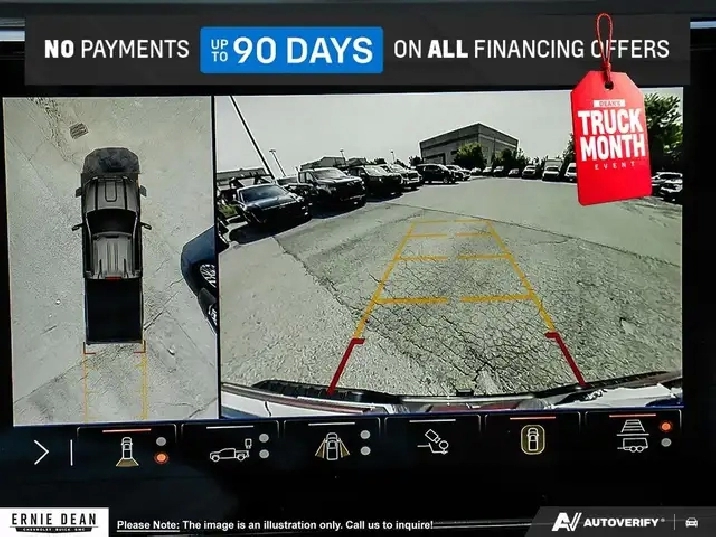 - Bed View Camera, camera in the CHMSL to show a view of the cargo bed display located in infotainment screen, includes Two Trailer Camera Provisions