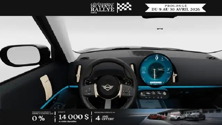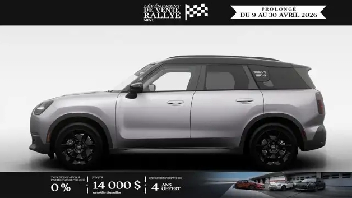 Découvrez cette superbe MINI Cooper S Countryman All4 neuve, arborant une élégante carrosserie métallisée Argent Fusion III contrastée par un toit et des coques de rétroviseurs noirs. Elle repose sur des jantes noires Asteroid Spoke de 18 pouces qui accentuent son allure dynamique. L'habitacle raffiné est doté d'une sellerie en Vescin et tissu Noir et Bleu, incluant la ligne Premier, le style Classique ainsi que l'ensemble Confort pour un bien-être optimal.